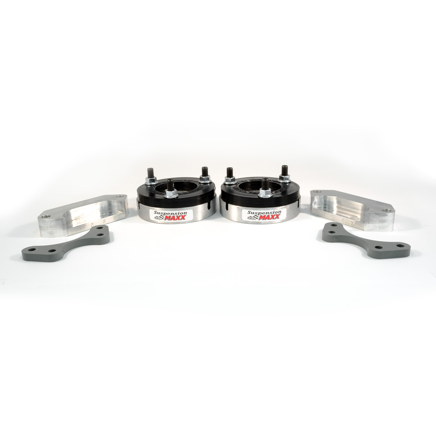 Spacers included in the MAXXStak SMX-10185X kit are precision CNC Milled from billet aluminum for excellent fit, strength and rigidity, as well as long life. No cracking, No sagging, No rust. MAXXStak includes all the parts and hardware required for you to do the job right. Components include bump stop spacers, and upper A-arm spacers which reduces angle to the upper ball joint boot when the suspension is in the upper range of travel. Stock shocks are kept in place to retain the comfortable factory ride and reduce cost. The kit is completely reversible and ideal for leased vehicles. Installation can be completed in just 2 hours using appropriate tools and is supported by the SuspensionMAXX Techical Support Program. MAXXStak is 100% Made in America and covered by the MAXX Structural Lifetime Warranty.