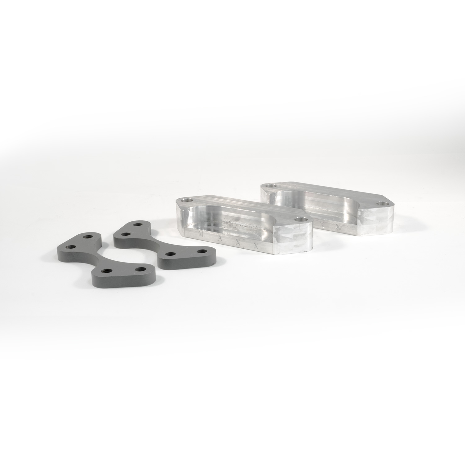 This high quality and well-engineered system enables you to lift your front suspension 2” by inserting the precision CNC milled MAXXStak aluminum spacers between the top of the struts and upper frame mounts. Additional lift heights of 2.25” and 2.5” are achieved by inserting a specified number of the provided Ultra High Density Polyurethane shims between the aluminum spacers and frame mounts. The shims also provide additional isolation for the springs, which helps to reduce noise, harshness and vibration. The result is a smoother and more satisfying ride.