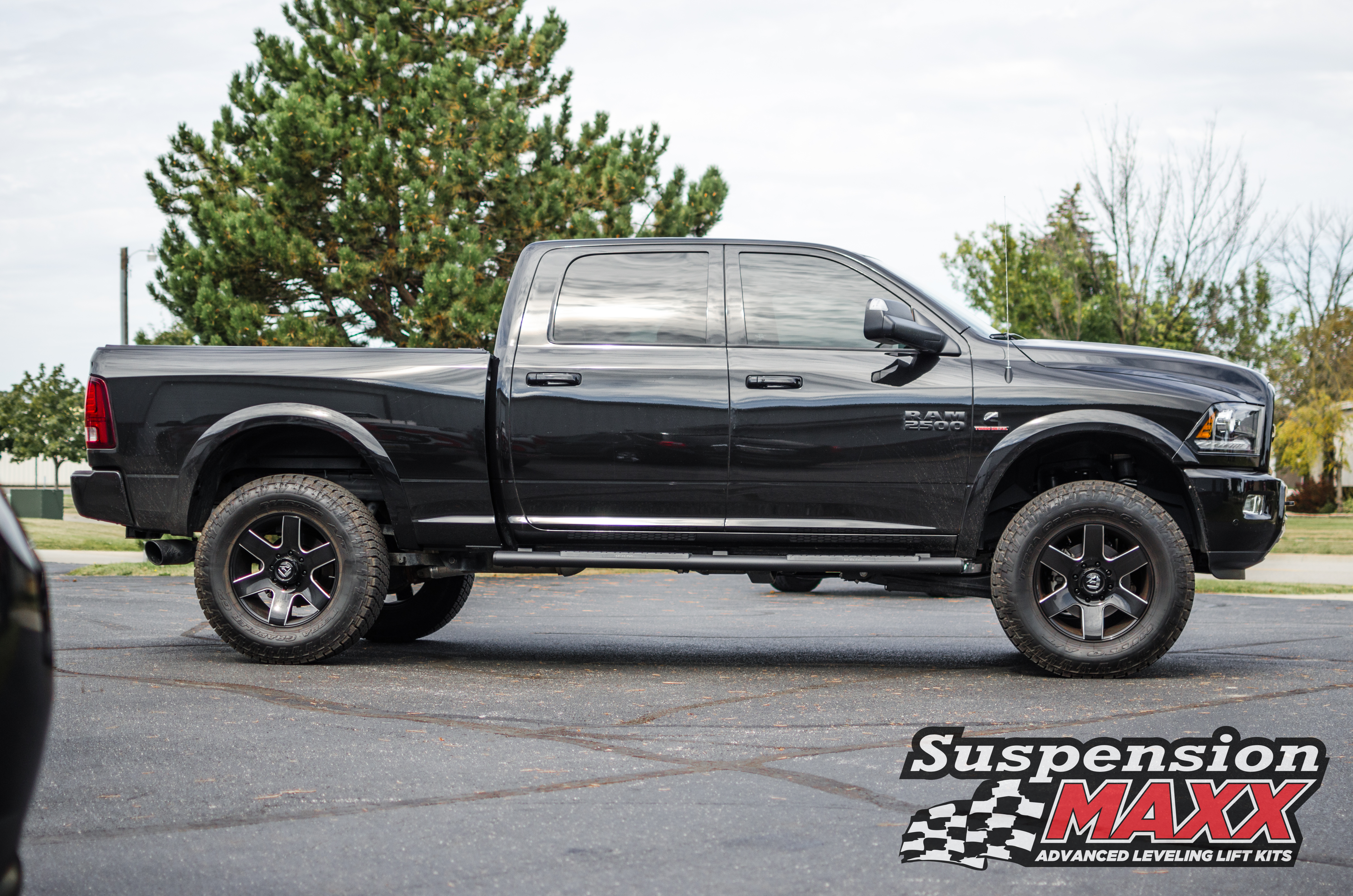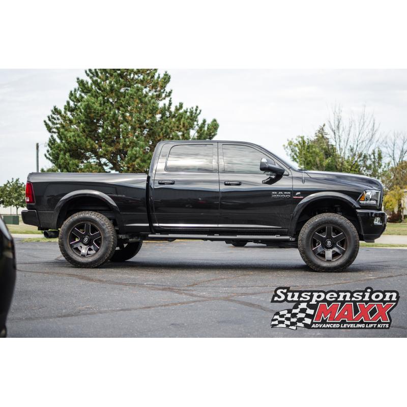 The SuspensionMAXX MAXXStak 2.5” Front Leveling Kit provides 2.5” of lift to the front ride height of the 2014-2022 Ram 2500 and 2013.5-2022 Ram 3500 4x4, including Mega Cab models. The components of MAXXStak kit SMX-10214 has recently been released and is engineered to integrate with the Ram’s new radius arm front suspension. MAXXStak enhances ride profile, and is an economical alternative to expensive lift kits. SMX-10214 will allow fitment of up to a 35" tire on factory rims or 34" on aftermarket wheels with a 9 inch rim with a positive wheel offset.