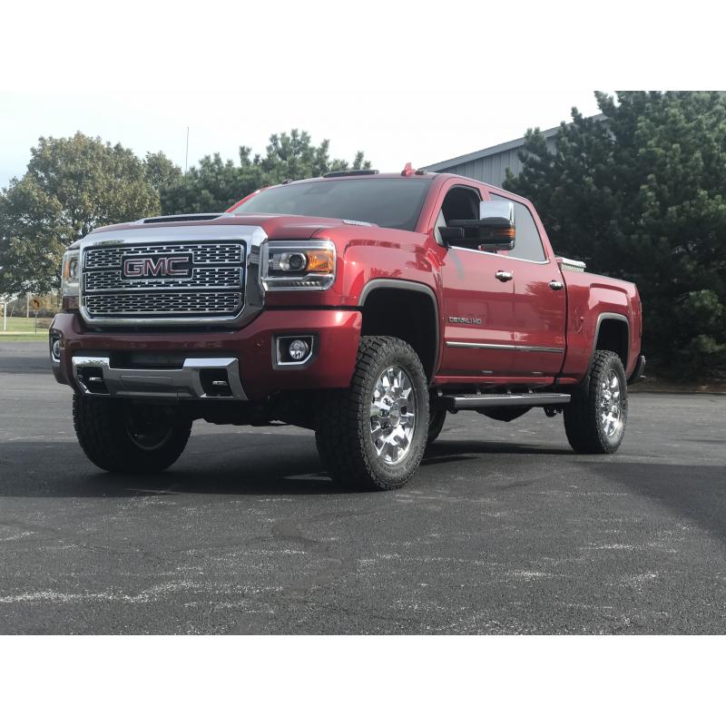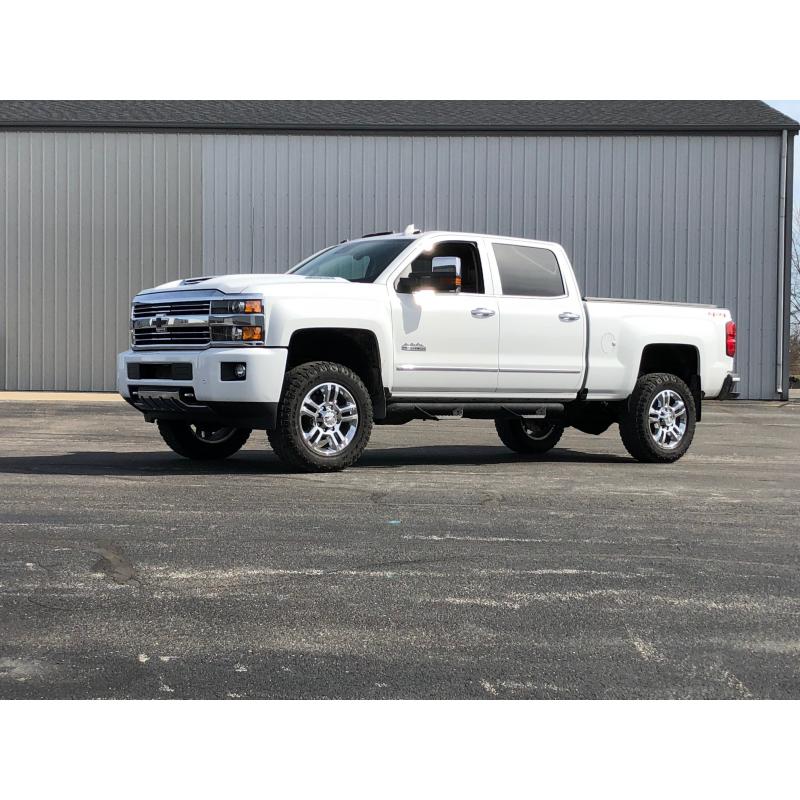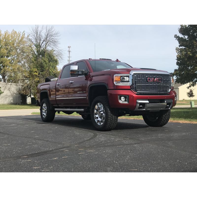 Includes patented SuspensionMAXX MAXX Cam 3 leveling kit and our MAXX travel upper control arms Allowing for up to 3" of lift and tires sizes up to 35" ALL TERRAIN TIRES on 2015-2019 GM HD trucks. 34" tires on 2011-2014 GM HD trucks. Note: Must use stock OEM wheel or an aftermarket 9" wheel with a positive offset for best clearance.