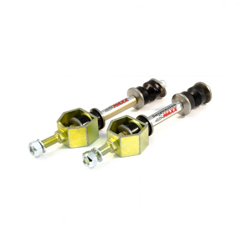MAXXLink Heavy Duty Sway Bar End Links use thermoplastic/urethane bushings to perform better and last longer than the original equipment ball-in-socket design. Eyelet links are manufactured with ultra-high strength 4140 treated alloy steel and electroplated with yellow zinc dichromate for corrosion resistance. MAXXLinks come complete with stainless steel washers and locking fasteners and are maintenance free. MAXXLinks can be used as high-quality replacement parts or as a preventative maintenance measure.