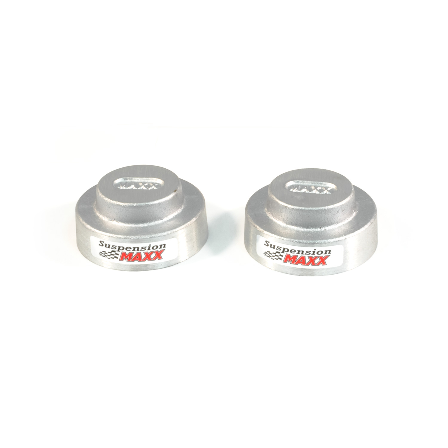 Simply insert the MAXXStak spacers between the coil springs and the axle spring perch. Spacers are CNC milled billet aluminum for strength and long life. No cracking, sagging or rusting. The kit requires no cutting or drilling – making it completely reversible. Installation takes approximately one hour using appropriate tools and is supported by the SuspensionMAXX Technical Support Program.