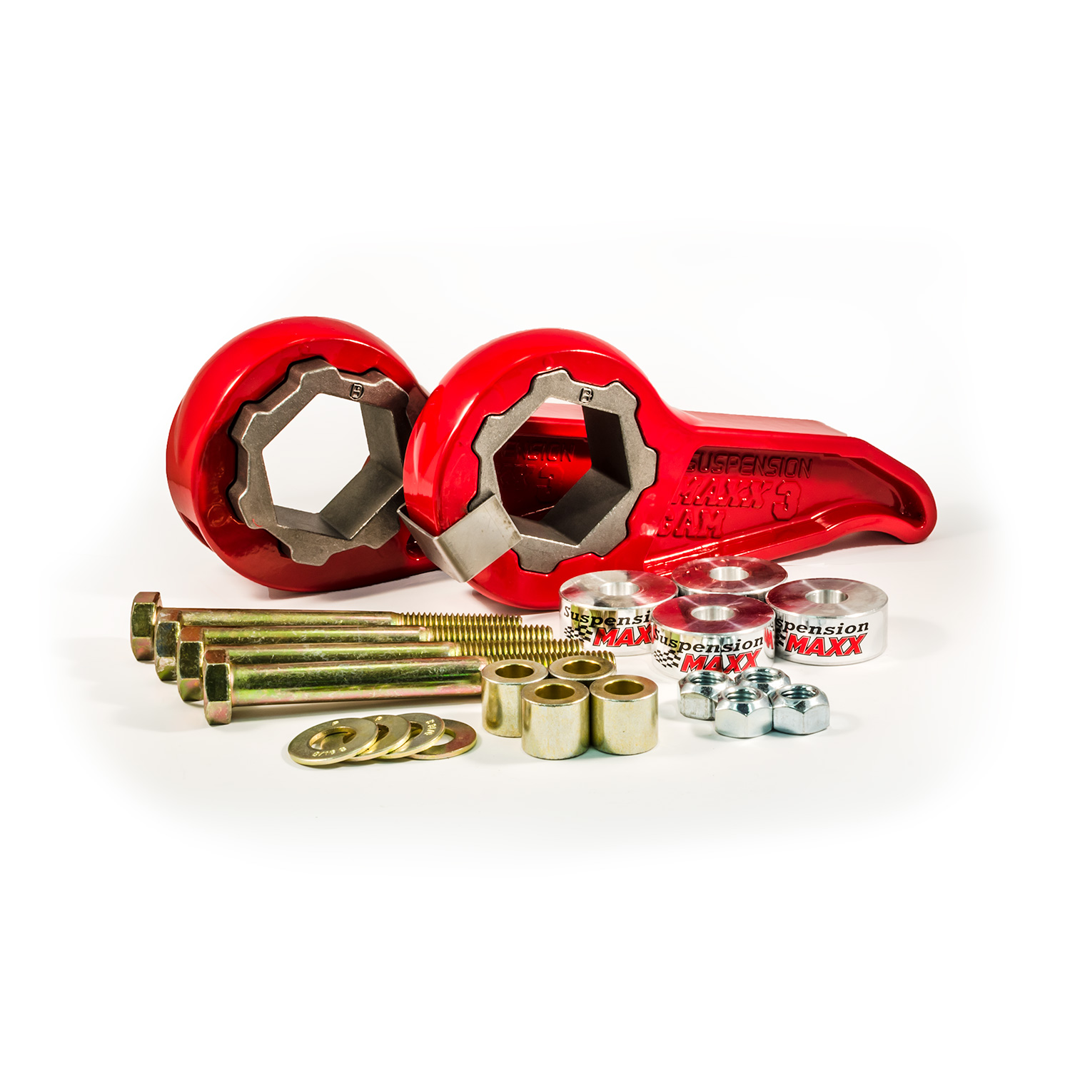 MAXXCam 3 kits include all required hardware including differential relocation spacers to maintain proper axle shaft geometry. MAXXCam is a lower cost option to high-priced full lift kits. Quick to install when using the SuspensionMAXX torsion bar unloader tool, requires no extensive modifications to the vehicle, and is completely reversible. Made in the USA. There is no other product like it.
