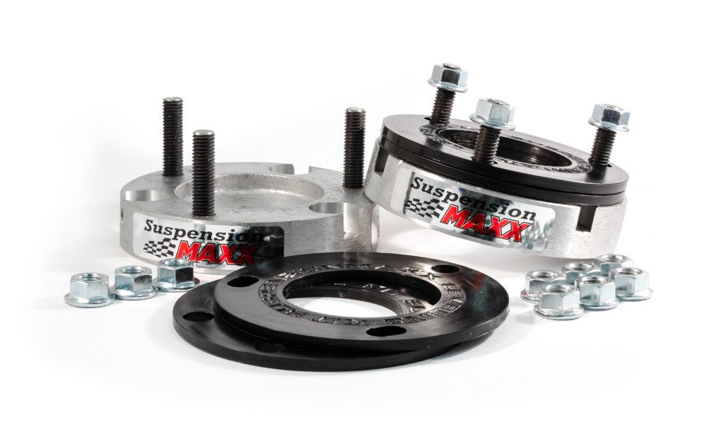This high quality and well-engineered system enables you to lift your front suspension 2” by inserting the precision CNC milled MAXXStak aluminum spacers between the upper strut and frame mounts. Additional lift heights of 2.25” and 2.5” are achieved by inserting a specified number of the provided Ultra High Density Polyurethane shims between the aluminum spacers and frame mounts. The shims also provide additional isolation for the springs, which helps to reduce noise, harshness and vibration. The result is a smoother and more satisfying ride.