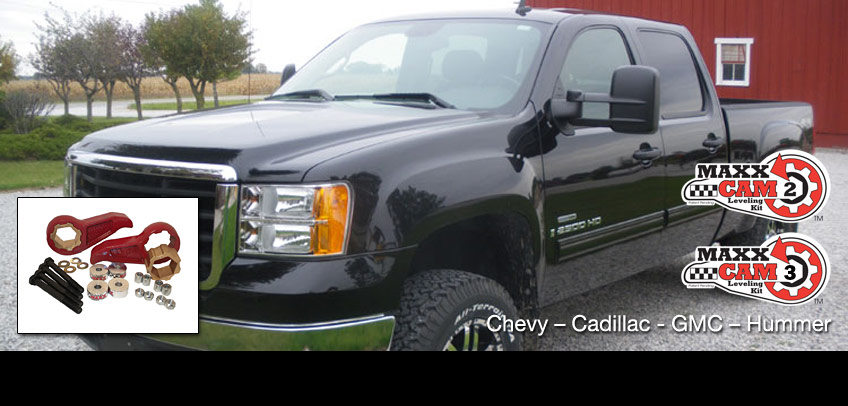 MAXXCam Adjustable Torsion Bar Leveling Kits are engineered to smoothly integrate with the stock suspension. There is no torsion bar preload and the original equipment shocks are kept in place. This not only helps to maintain the stock ride and handling characteristics of your truck or SUV, but reduces cost as well. MAXXCam is installed in approximately 1-2 hours and is and is supported by the unsurpassed SuspensionMAXX Techical Support Program. Completely covered by the MAXX Structural Lifetime Warranty.